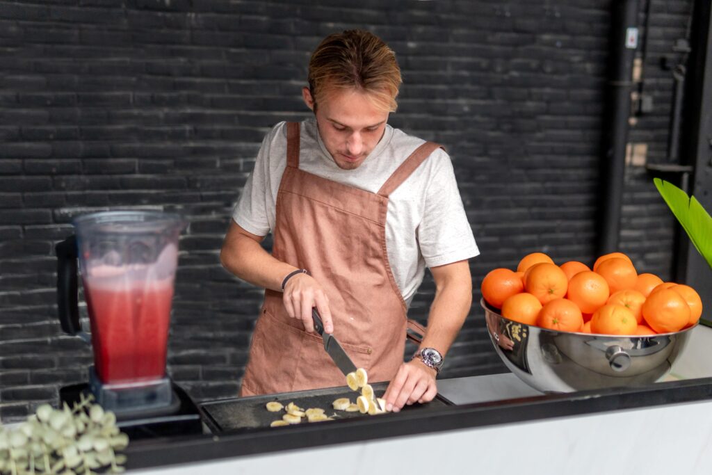 Zeker! Wij zijn al meer dan 15 jaar experts op het gebied van smoothies en fruit en helpen je graag met de beste keuze voor jouw feest of evenement. De menukaart kunnen wij personaliseren naar jouw wens, dus hoe tof is het als jouw gasten straks de ‘jouw-bedrijf’ smoothie in elkaar fietsen?